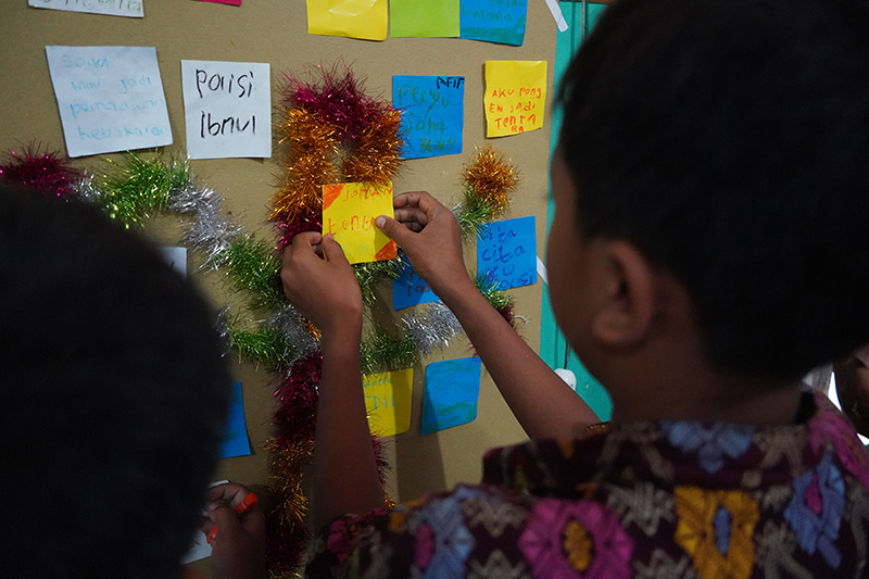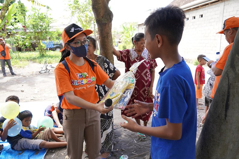 Tampak keceriaan anak-anak di lokasi pengungsian saat mengikuti rangkaian aktivitas dengan antusias namun tetap tertib. Mulai dari mewarnai, mendengarkan cerita, hingga mengikuti berbagai permainan yang seru dan diselingi tawa ceria, antara lain lomba ketepatan melemparkan bola ke wadah, menggelindingkan bola melalui pipa, bermain berpasangan menjaga balon agar tidak jatuh ke lantai, juga saat anak-anak dengan sangat antusias menuliskan impian mereka pada kertas, yang kemudian ditempelkan pada Pohon Harapan. Monique Shintami, relawan dari ruparupa.com – salah satu merek dalam pilar bisnis Commercial Technology dari Kawan Lama Group mengatakan, "Kita mengadakan program trauma healing bersama adik-adik di lokasi pengungsian. Jadi kita bermain, memberikan hadiah, dan aktivitas seru lainnya, dengan tujuan untuk mencoba membantu mereka menghilangkan trauma yang mereka rasakan."