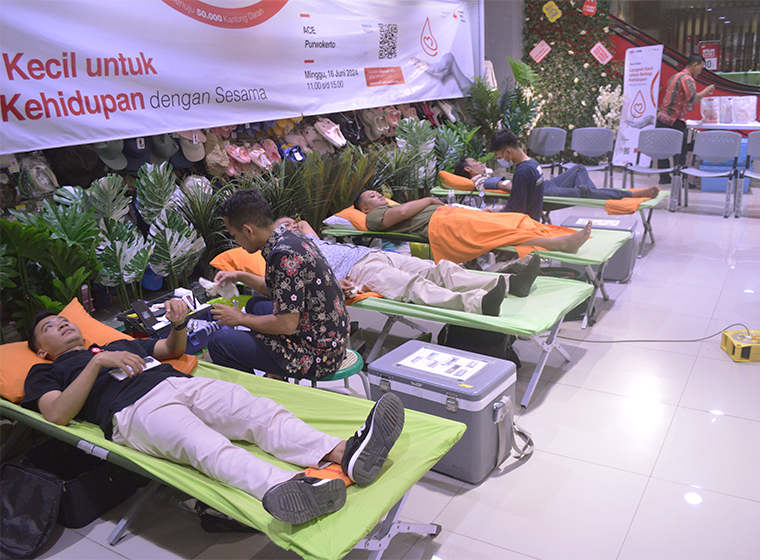 Celebrating International Blood Donation Day, commemorated on 14 June 2024, also as a token of care about the fulfillment of national blood needs, Kawan Lama Group in cooperation with the Indonesian Red Cross (PMI), held National Blood Donation in over 130 ACE and INFORMA stores located at 72 cities and regencies in 28 provinces in Indonesia during June and July 2024. The program with the theme ‘Small Steps to Share Life with Others’ was attended by employees, customers, and the public, successfully collecting more than 3,000 blood bags, making the total amount collected since the program was first held in 2015 until now over 29,000 blood bags.